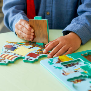 You can even add character pieces and use the back of the sheet as a play scene. When you’re done playing, take it apart and match everything back into place—easy to build, easy to clean up, and fun every time!