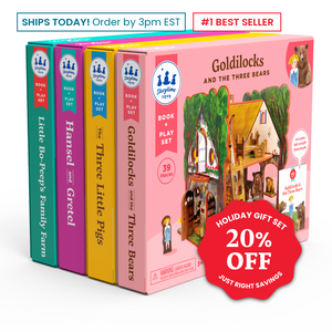 Bring four beloved tales to life with a collection that turns reading into hands on imagination. Goldilocks, The Three Little Pigs, Hansel and Gretel, and Little Bo Peep’s Family Farm each begin as a storybook and transform into a buildable playset filled with creativity and wonder. Kids pop out the pieces, build the scenes, and let their ideas unfold in their own unique way. A book, puzzle, and playset in one, this bundle inspires storytelling, learning, and magical screen free play that feels truly special.