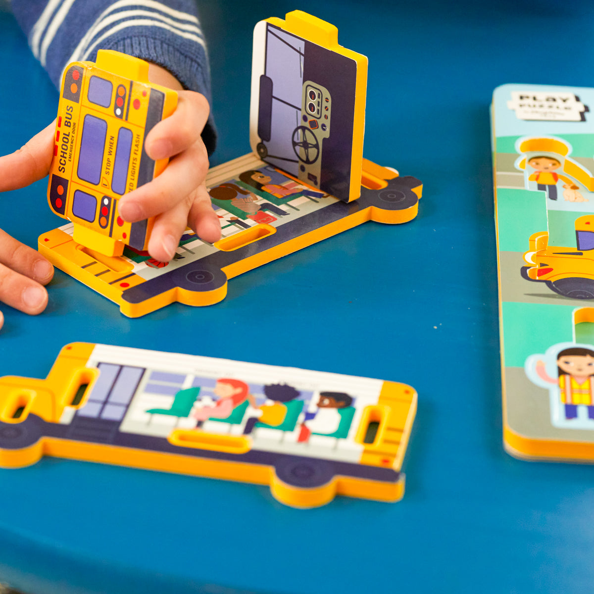 From flat pieces to a standing school bus, this Playworld invites kids to build and then settle into play. After assembling the bus, they flip the board to discover a schoolyard scene that brings the world to life. Designed for easy building and open-ended imagination, all without tools or glue.