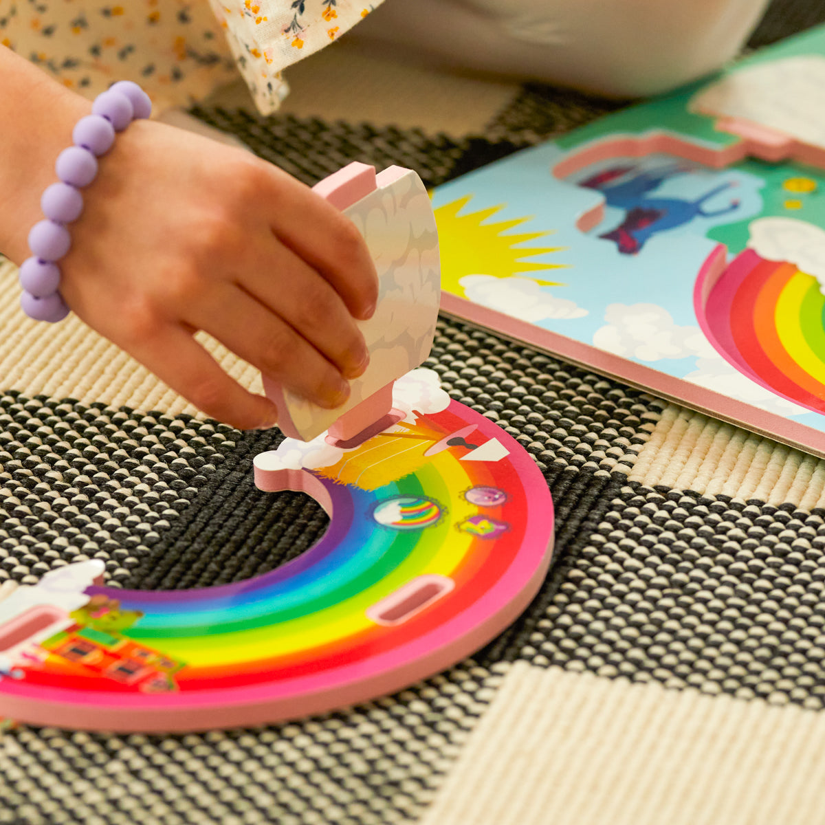 A flat puzzle transforms into a world they built themselves, piece by piece.