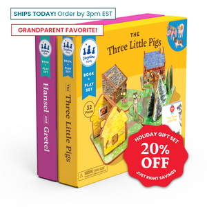Bring classic stories to life with The Three Little Pigs and Hansel & Gretel. Each beautifully designed playset includes a storybook and detailed pieces for building, reading, and imaginative play — a perfect collection for creative young storytellers.