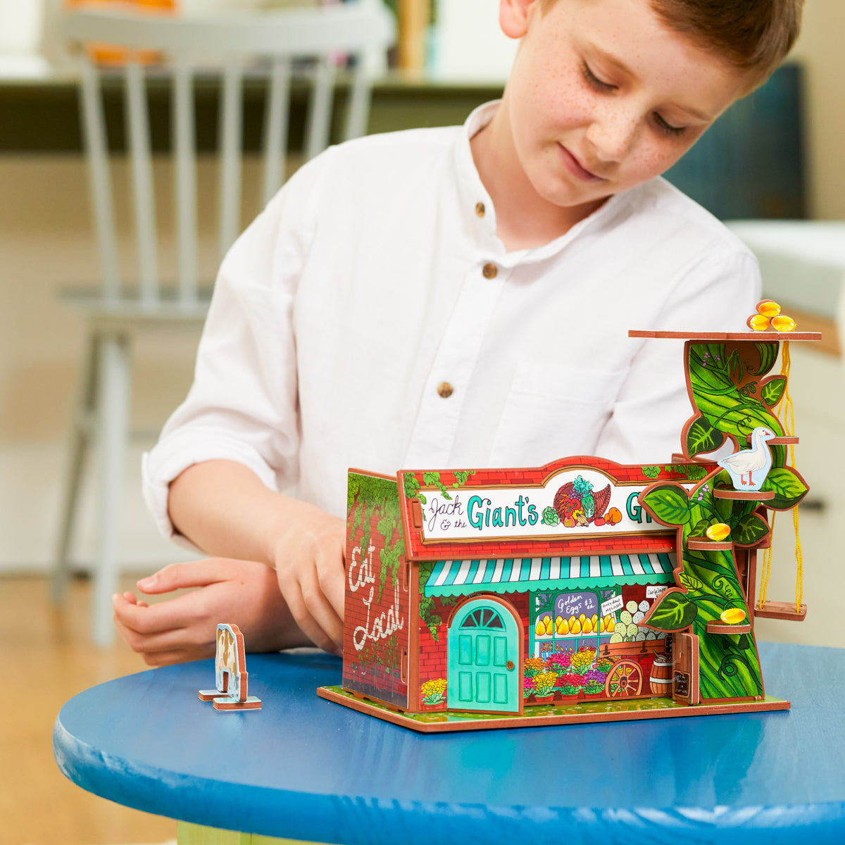 In a twist on a fairytale classic, Jack goes to town to sell his family’s only cow for money to buy food. Against his mother’s wishes, he trades the cow for magic beans. When planted, the beans grow into a giant beanstalk that leads to a Giant’s house high in the sky. But rather than steal the Giant’s goose and golden eggs, Jack collaborates with this friendly Giant to open a grocery store - providing plenty of food for Jack, his mother, and the entire community! Build this adorable local grocery store while learning the power of making new friends and finding creative solutions to benefit everyone. And be sure to check out the DIY bean-planting project in the back of the included illustrated Storybook!